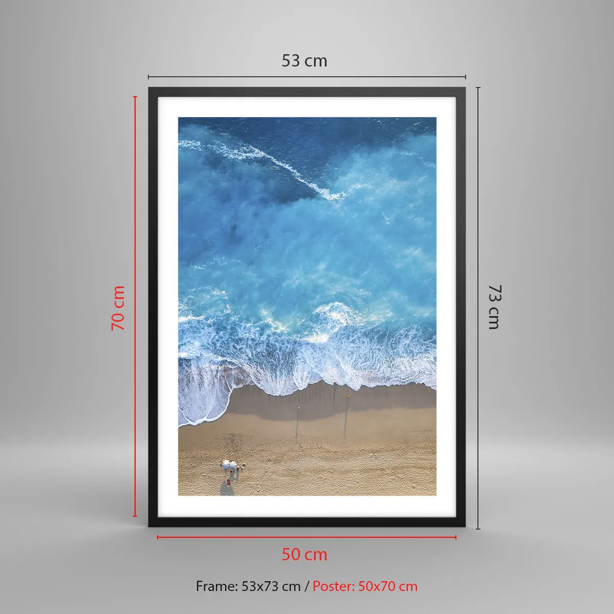 Plakat i sort ramme - Luftfoto af havbølger, der slår ind mod kysten - 50x70cm - Den blå kraft - Moderne vægdekoration til stue og soveværelse ARTTOR