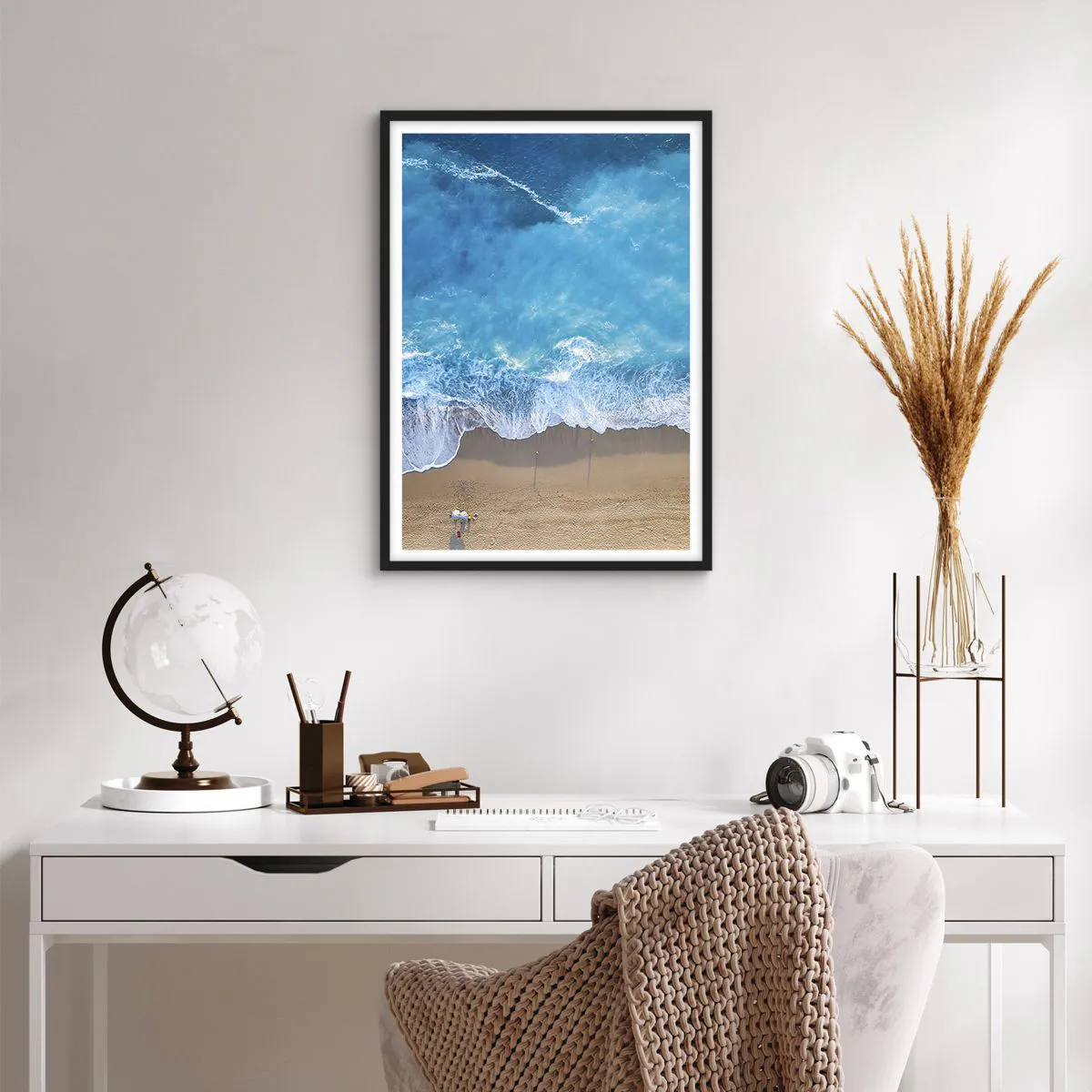 Takket være sit unikke perspektiv giver plakaten dig mulighed for at føle den rummelighed og fred, som havet bringer. Det er den perfekte dekoration for elskere af rejser, havet og minimalistiske landskaber. Den bringer friskhed til interiøret og giver det lethed og en delikat feriestemning.