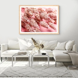 Plakat i ramme af lyst egetræ - Blomsterkaskade i lyserødt - 40x40 cm