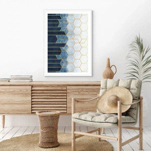 • Abstrakt, kunst, sekskant, Abstrakt, kunst, Til kontoret, til arbejdsværelset, til spisestuen, til hallen, til stuen, til soveværelset, Blå, Grå, Guld, Lodret