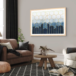 Plakat i ramme af lyst egetræ - Komposition i synkoperet rytme - 70x100 cm