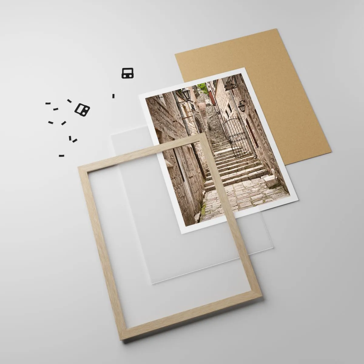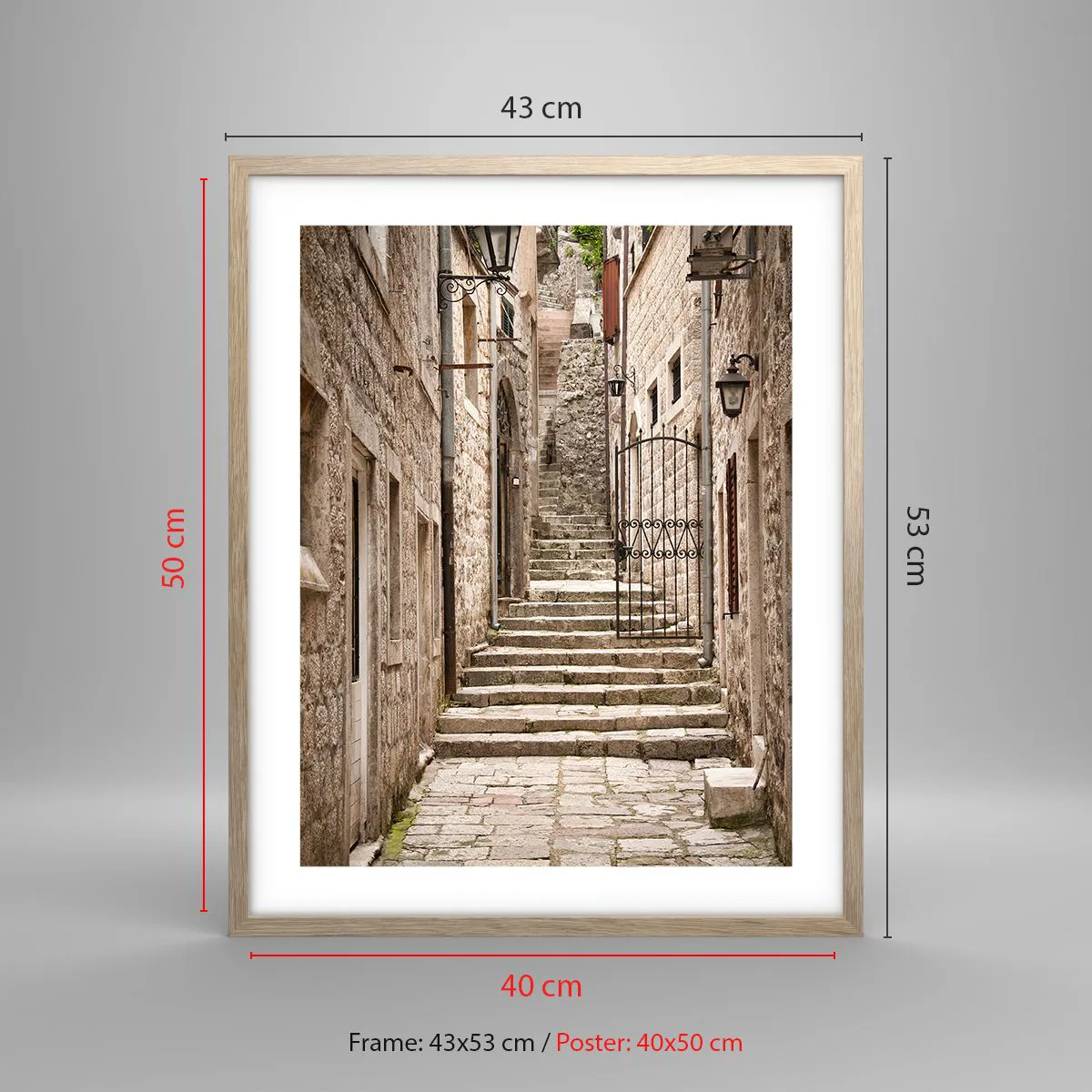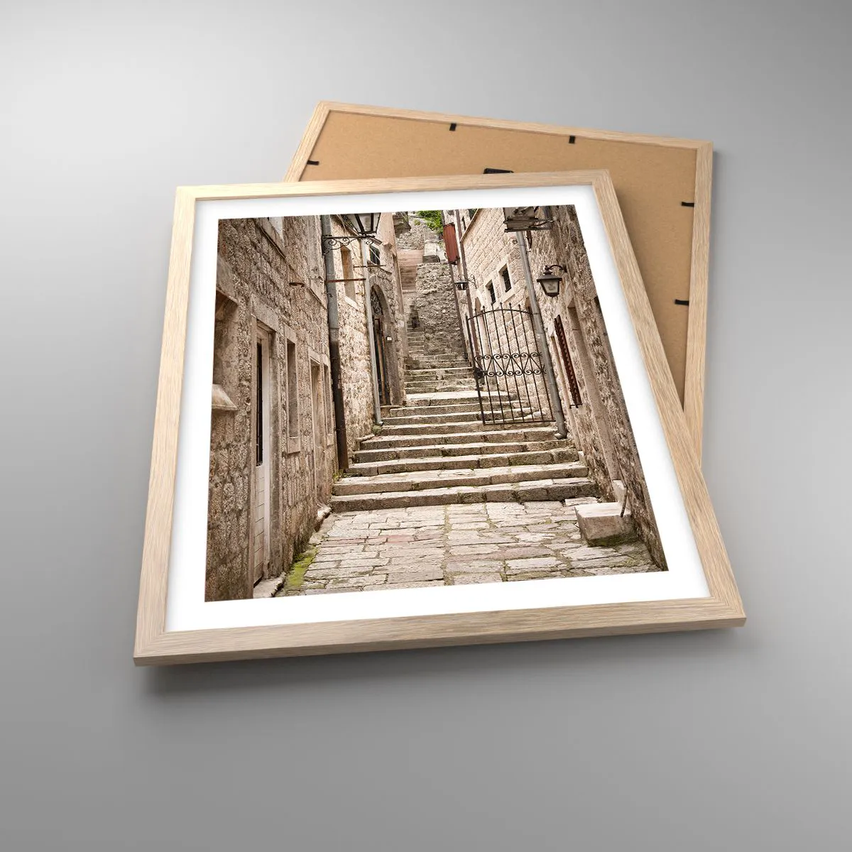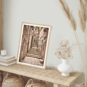 Plakat i ramme af lyst egetræ - Magisk gammel gade - 40x50 cm