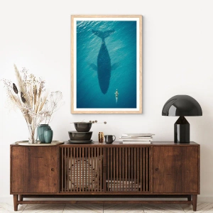 Plakat i ramme af lyst egetræ - Møde på havet - 50x70 cm