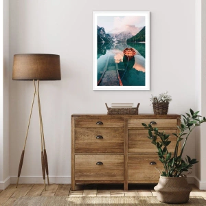 Plakat i hvid ramme - Fredfyldt søvn i bjergene - 70x100 cm
