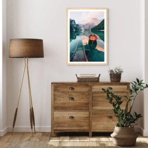 Plakat i ramme af lyst egetræ - Fredfyldt søvn i bjergene - 40x50 cm