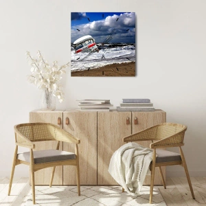 Vægur, Uret - En retrobus mod baggrunden af et stormfuldt hav - 30x30cm - Og hvad er du overrasket over? - Moderne vægdekoration til stue, køkken og soveværelse ARTTOR