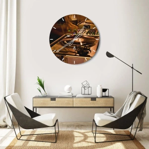 Uret er fremstillet af 4 mm tykt sikkerhedsglas. Urets fremstillingsteknologi er i overensstemmelse med sikkerhedsklasse 2B2 i henhold til EN 12600:2004, hvilket garanterer slagfasthed. Uret på glas er klar til at blive hængt op - det har et metalophæng fastgjort på bagsiden af uret og en skumafstandsholder til at regulere urets lige afstand fra væggen. Uret har en lydløs mekanisme, der drives af et 1,5 V - AA-batteri (batteri medfølger ikke).
