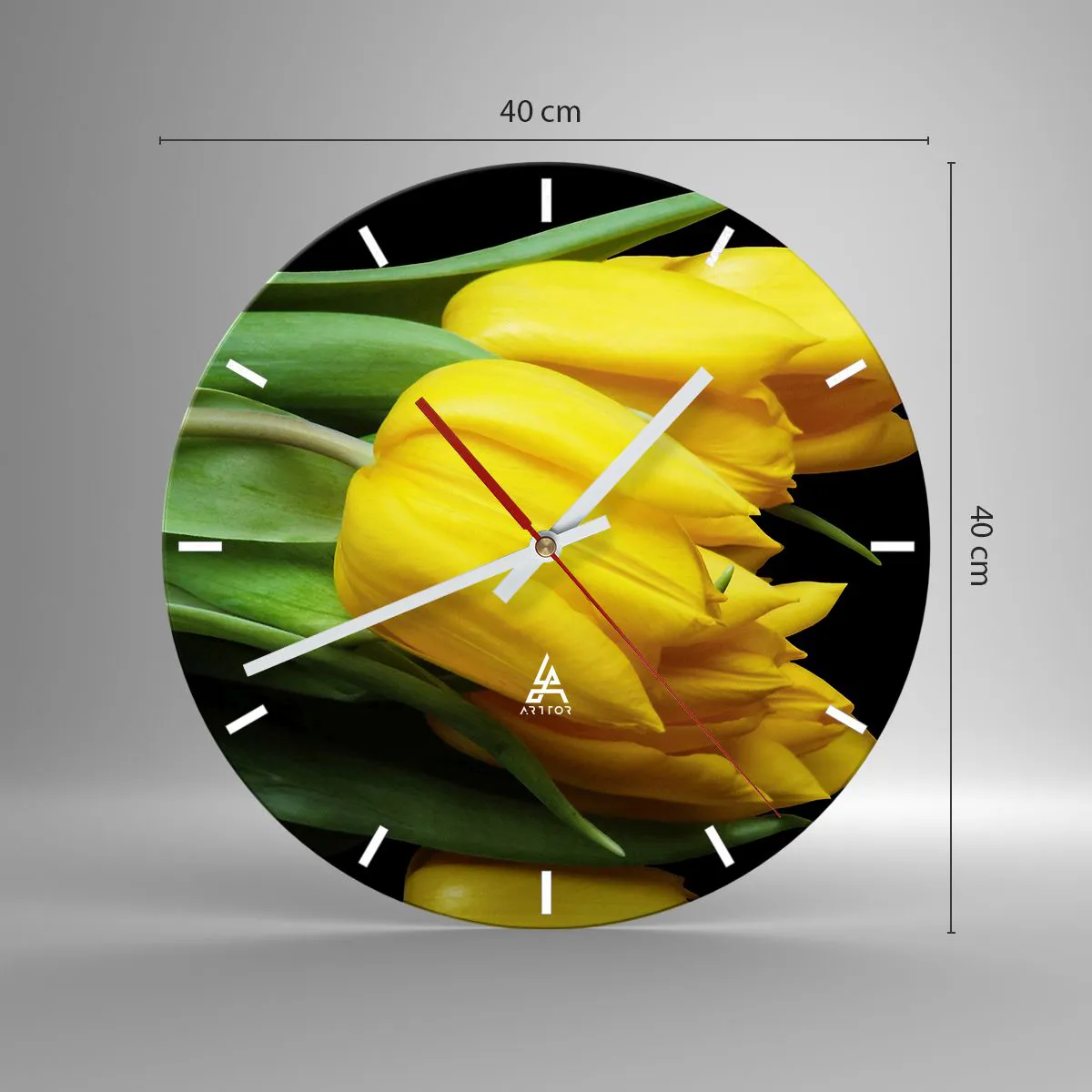 Uret er fremstillet af 4 mm tykt sikkerhedsglas. Urets fremstillingsteknologi er i overensstemmelse med sikkerhedsklasse 2B2 i henhold til EN 12600:2004, hvilket garanterer slagfasthed. Uret på glas er klar til at blive hængt op - det har et metalophæng fastgjort på bagsiden af uret og en skumafstandsholder til at regulere urets lige afstand fra væggen. Uret har en lydløs mekanisme, der drives af et 1,5 V - AA-batteri (batteri medfølger ikke).