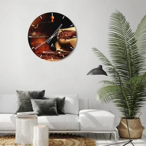 Vægur, Uret - Stilleben med kaffebønner og kværn - 40x40 cm