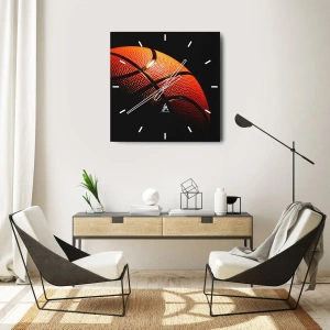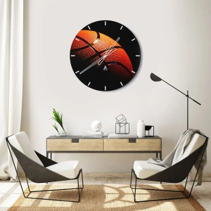Basketballmotivet symboliserer energi, passion og sportsånd. Den karakteristiske tekstur og orange farve tilføjer dynamik og tiltrækker opmærksomhed, hvilket gør uret til et dekorativt fokuspunkt i ethvert interiør. Den mørke baggrund fremhæver farvernes intensitet og tilføjer dybde til kompositionen.