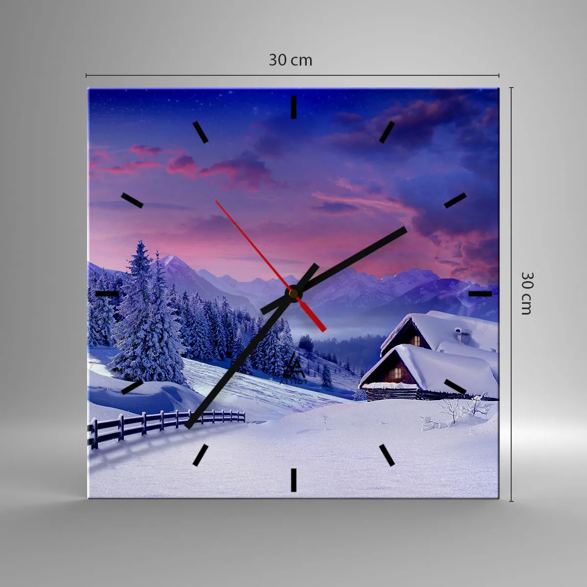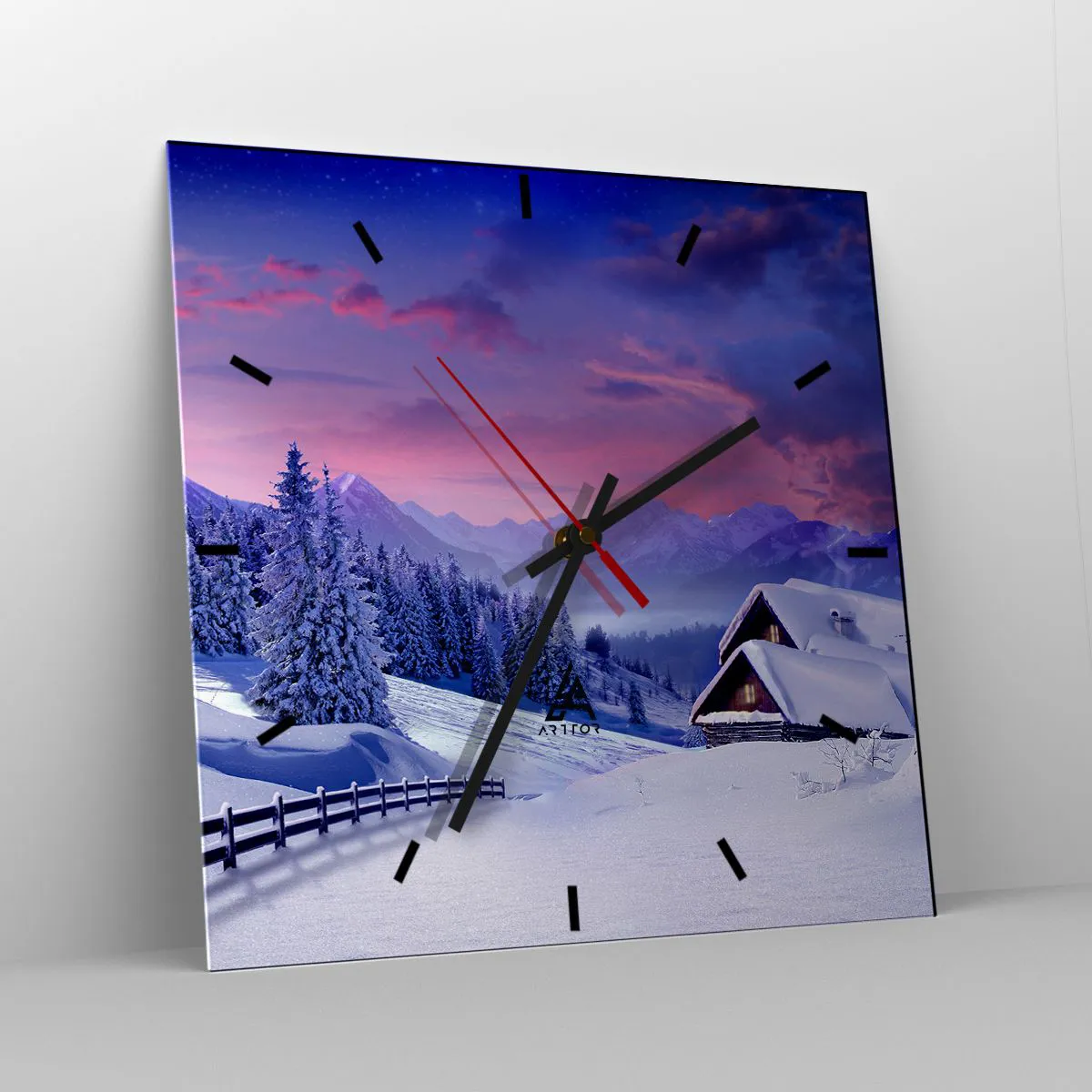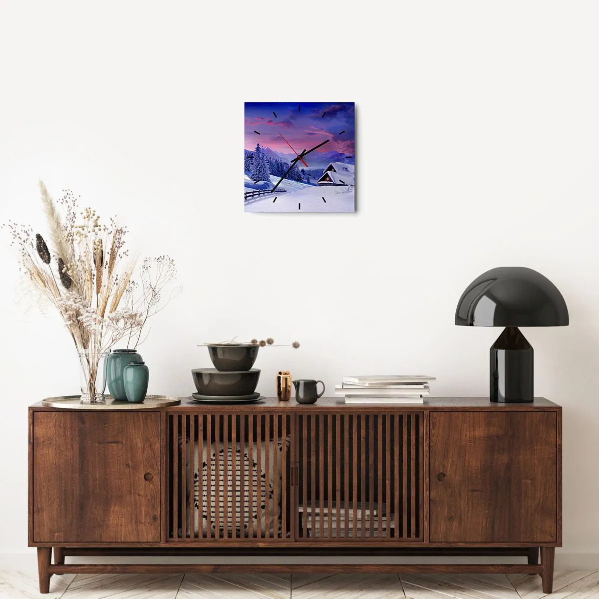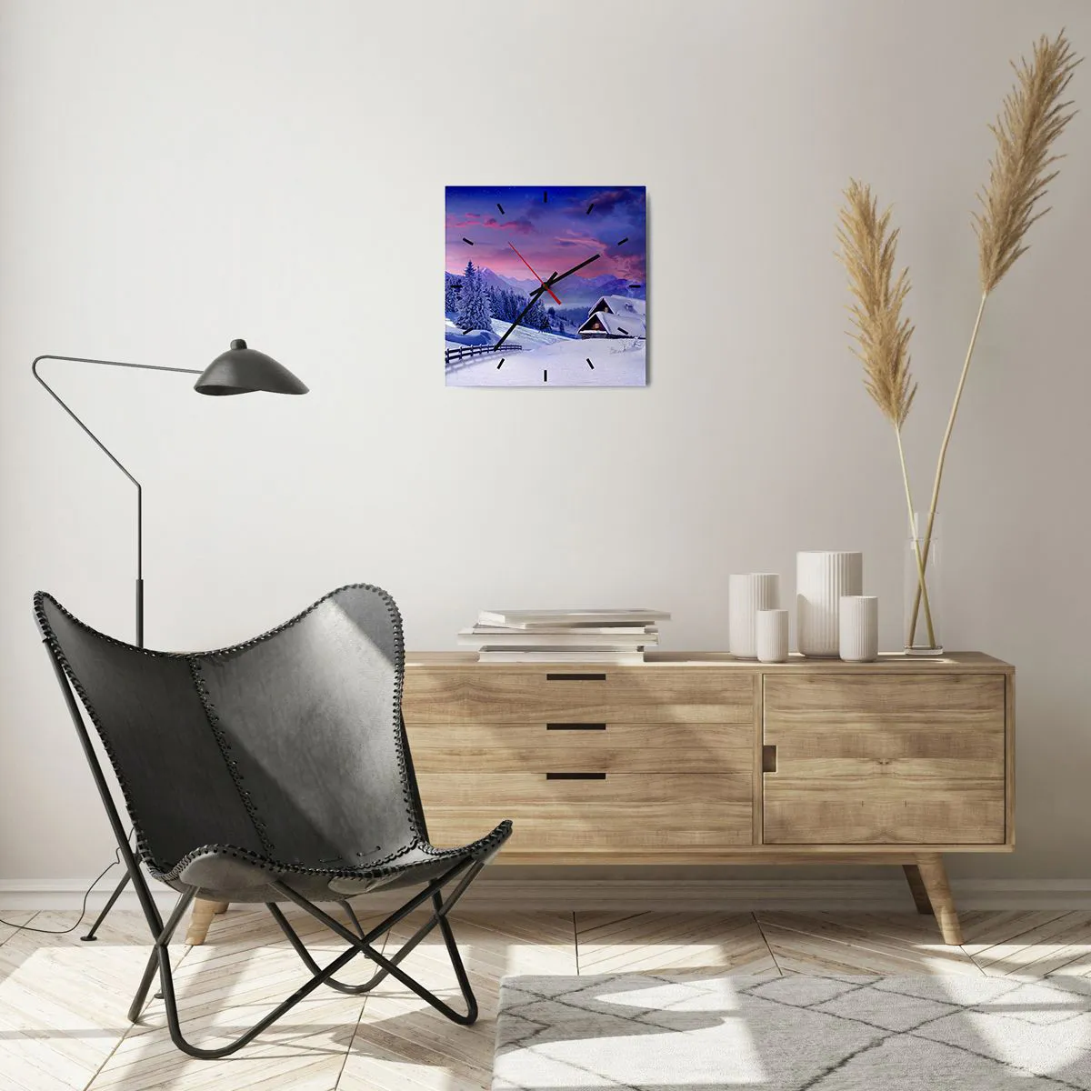 Uret på glas er klar til at hænge på væggen, det er udstyret med en monteret metalophæng for nem montering
