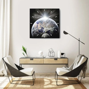 Uret er fremstillet af 4 mm tykt sikkerhedsglas. Urets fremstillingsteknologi er i overensstemmelse med sikkerhedsklasse 2B2 i henhold til EN 12600:2004, hvilket garanterer slagfasthed. Uret på glas er klar til at blive hængt op - det har et metalophæng fastgjort på bagsiden af uret og en skumafstandsholder til at regulere urets lige afstand fra væggen. Uret har en lydløs mekanisme, der drives af et 1,5 V - AA-batteri (batteri medfølger ikke).