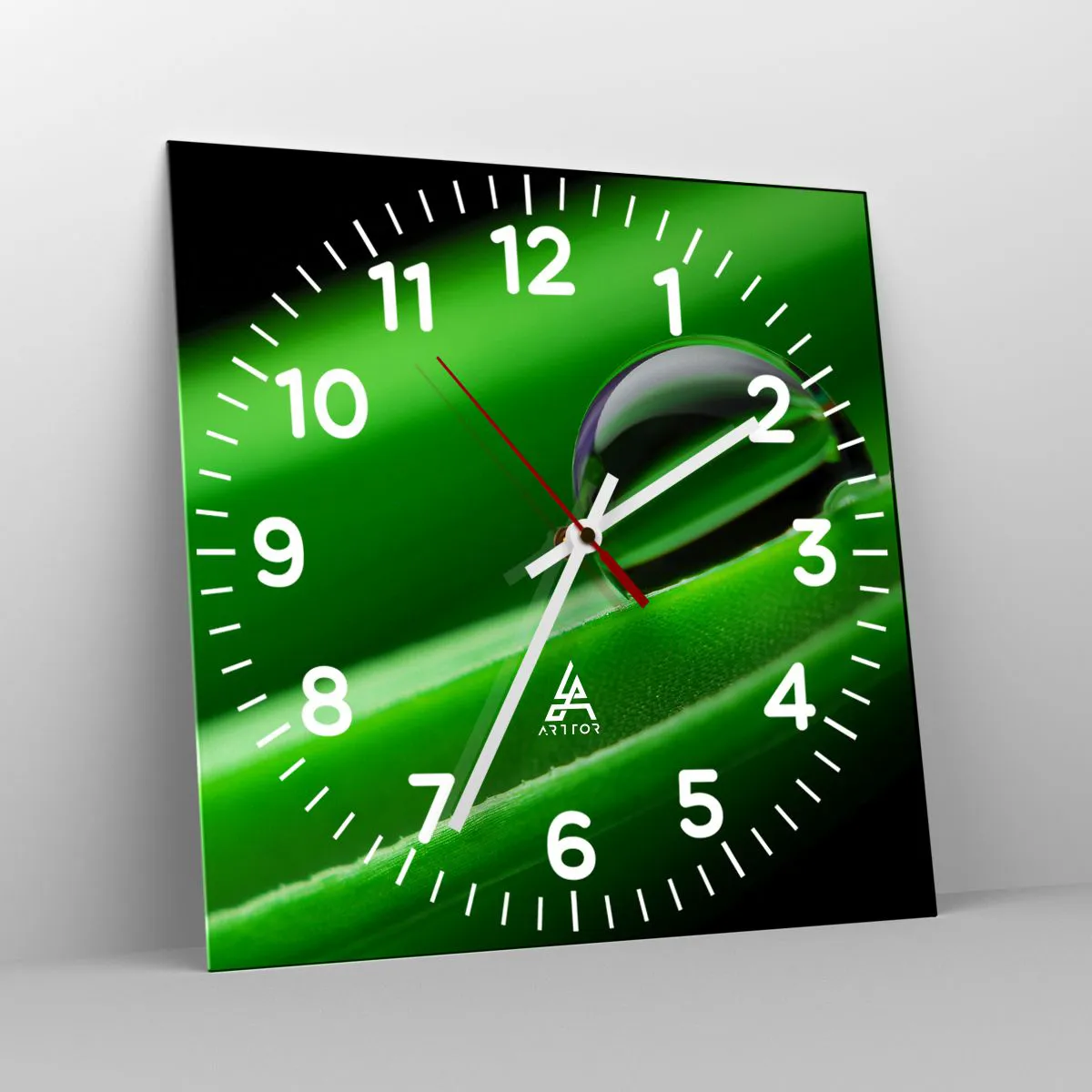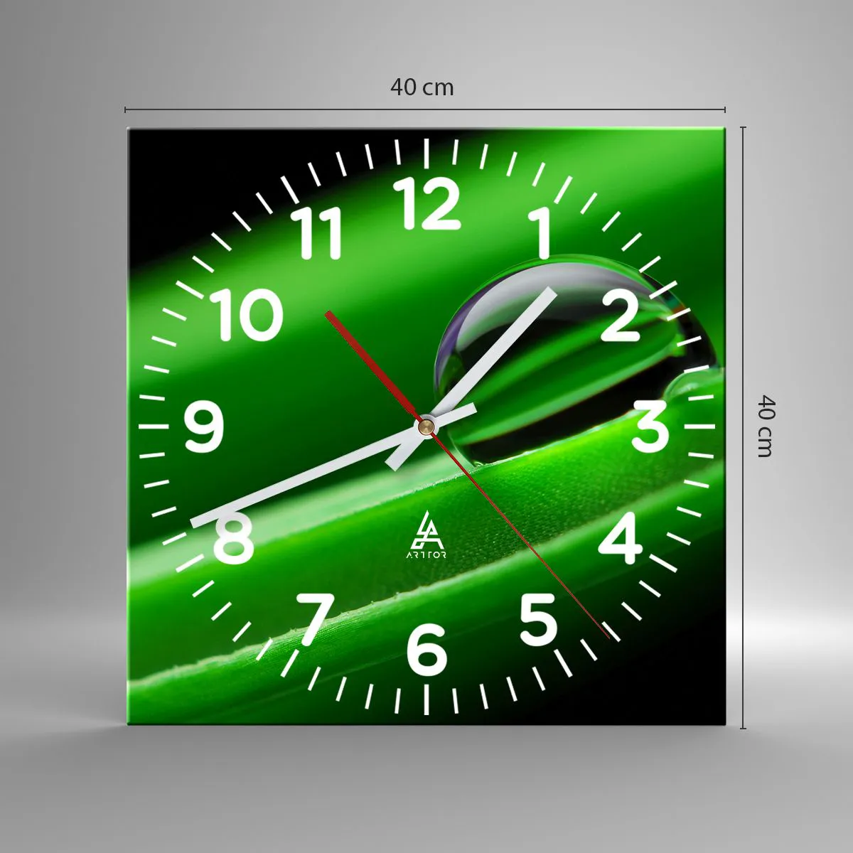 Uret er fremstillet af 4 mm tykt sikkerhedsglas. Urets fremstillingsteknologi er i overensstemmelse med sikkerhedsklasse 2B2 i henhold til EN 12600:2004, hvilket garanterer slagfasthed. Uret på glas er klar til at blive hængt op - det har et metalophæng fastgjort på bagsiden af uret og en skumafstandsholder til at regulere urets lige afstand fra væggen. Uret har en lydløs mekanisme, der drives af et 1,5 V - AA-batteri (batteri medfølger ikke).