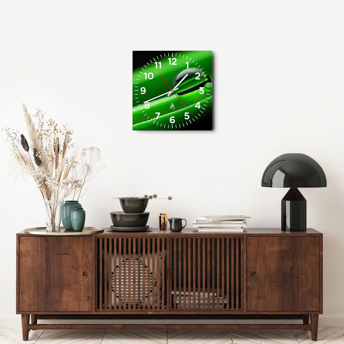 Uret på glas er klar til at hænge på væggen, det er udstyret med en monteret metalophæng for nem montering