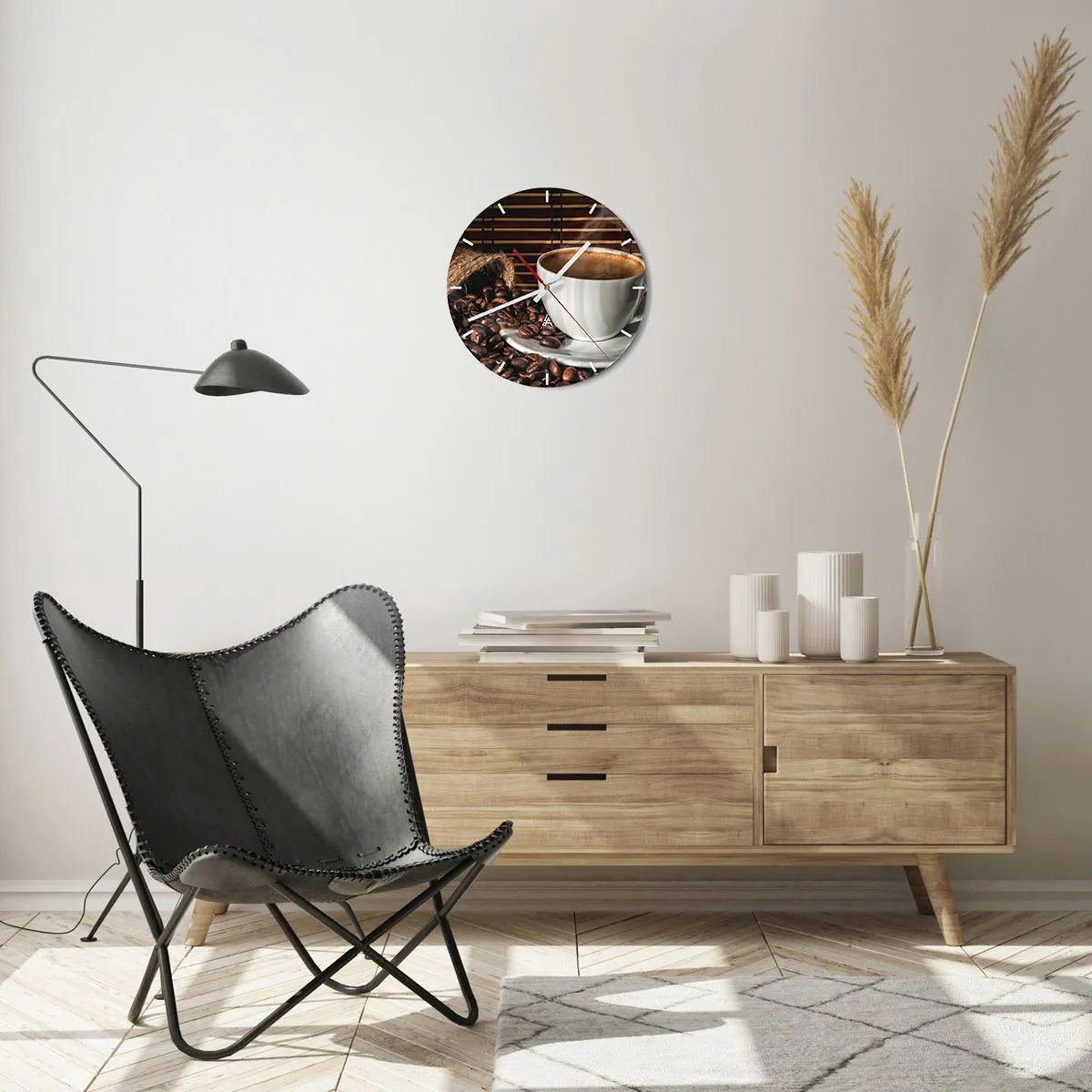 Dette vægur er et perfekt valg til køkkenet, stuen eller kontoret, hvor kaffe spiller en særlig rolle i de daglige ritualer. Motivet af en kop kaffe symboliserer afslapning, inspiration og et øjebliks stilhed i løbet af dagen, hvilket gør uret til et perfekt match til en række forskellige interiørdesigns.
