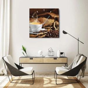 Vægur, Uret - Duften af mokka og honningvæskens tæthed - 40x40 cm