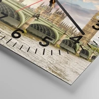 Uret er fremstillet af 4 mm tykt sikkerhedsglas. Urets fremstillingsteknologi er i overensstemmelse med sikkerhedsklasse 2B2 i henhold til EN 12600:2004, hvilket garanterer slagfasthed. Uret på glas er klar til at blive hængt op - det har et metalophæng fastgjort på bagsiden af uret og en skumafstandsholder til at regulere urets lige afstand fra væggen. Uret har en lydløs mekanisme, der drives af et 1,5 V - AA-batteri (batteri medfølger ikke).