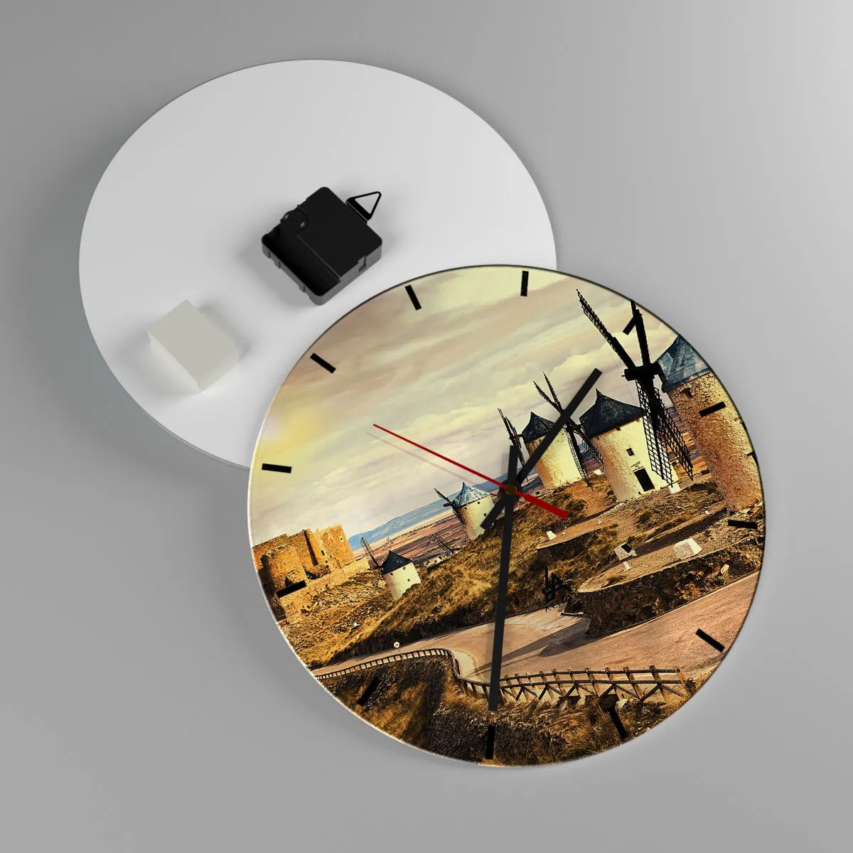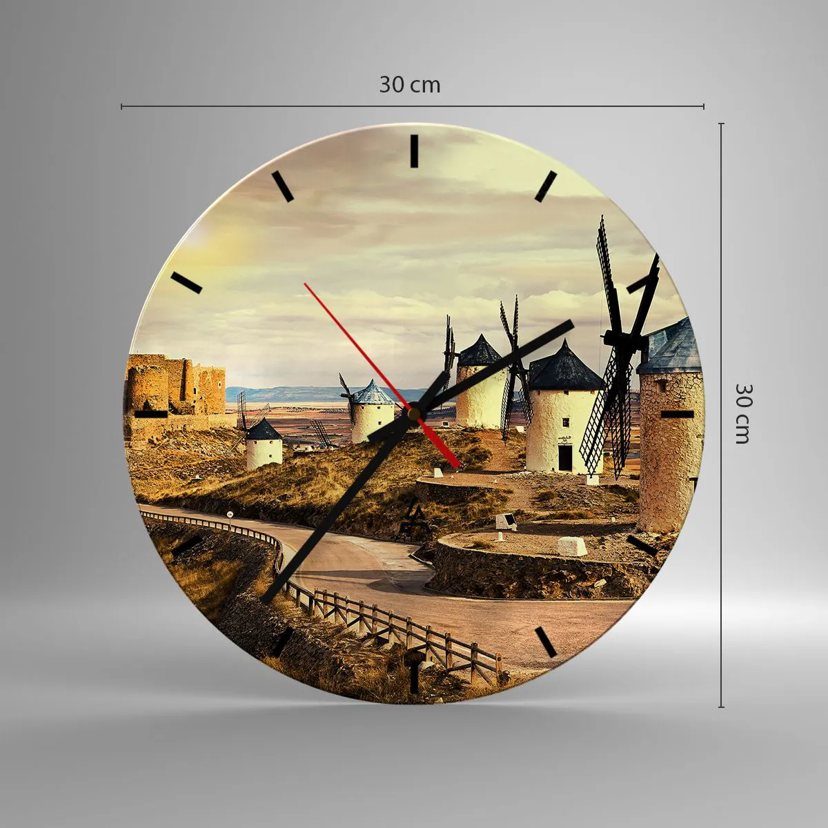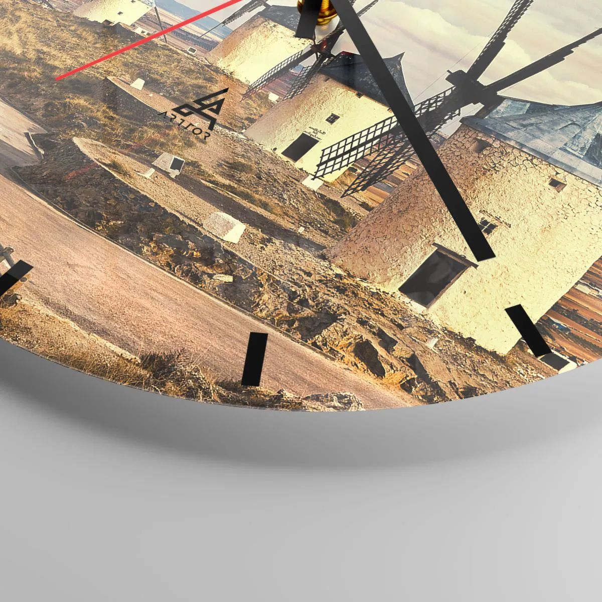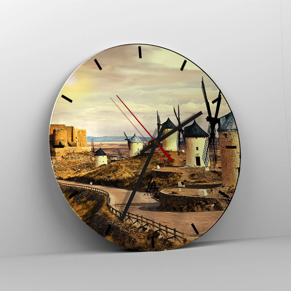 Vægur, Uret - Vindmøller på bakkerne i La Mancha - 30x30cm - Don Quixote er ved at dukke op - Moderne vægdekoration til stue, køkken og soveværelse ARTTOR