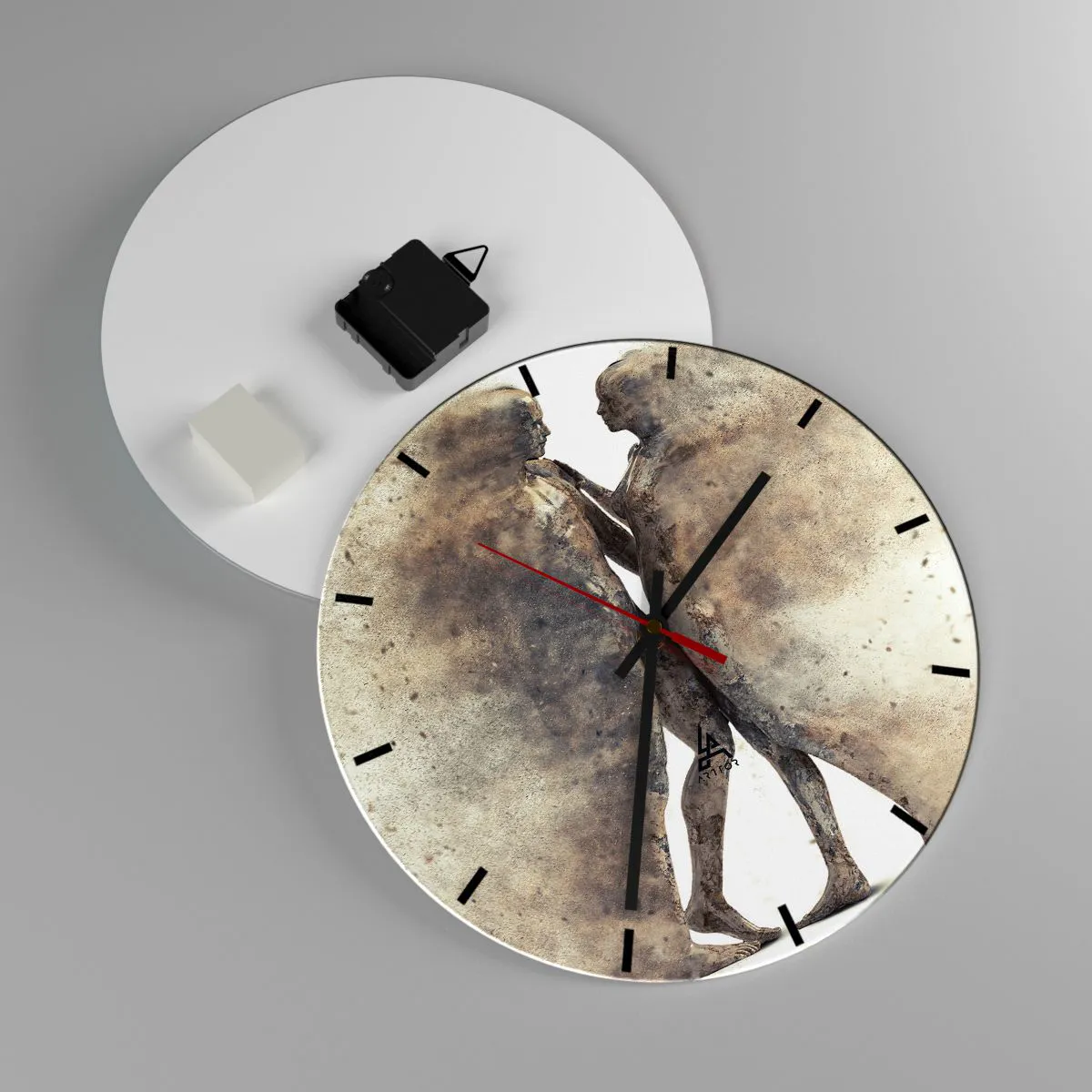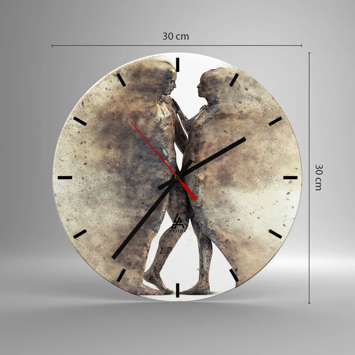 Vægur, Uret - To silhuetter i abstrakt stil på en lys baggrund - 30x30cm - Fra støv steg de til kærlighed - Moderne vægdekoration til stue, køkken og soveværelse ARTTOR