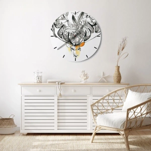 Tilføj et unikt præg til dit interiør med dette ur. Den **kunstneriske** tegning af en hjort med spredte gevirer og blade er en dekoration, der vil understrege din stil og bringe et element af naturen ind i dit hjem.