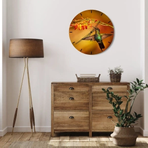 Uret på glas er klar til at hænge på væggen, det er udstyret med en monteret metalophæng for nem montering