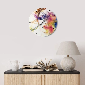 - Dette vægur har et abstrakt portræt af en kvinde i regnbuens farver. Perfekt til kunstelskere og originale dekorationer, da det bringer harmoni og kunstnerisk udtryk til ethvert interiør.