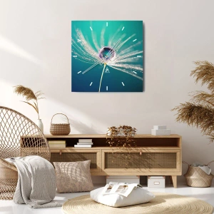 Uret er fremstillet af 4 mm tykt sikkerhedsglas. Urets fremstillingsteknologi er i overensstemmelse med sikkerhedsklasse 2B2 i henhold til EN 12600:2004, hvilket garanterer slagfasthed. Uret på glas er klar til at blive hængt op - det har et metalophæng fastgjort på bagsiden af uret og en skumafstandsholder til at regulere urets lige afstand fra væggen. Uret har en lydløs mekanisme, der drives af et 1,5 V - AA-batteri (batteri medfølger ikke).