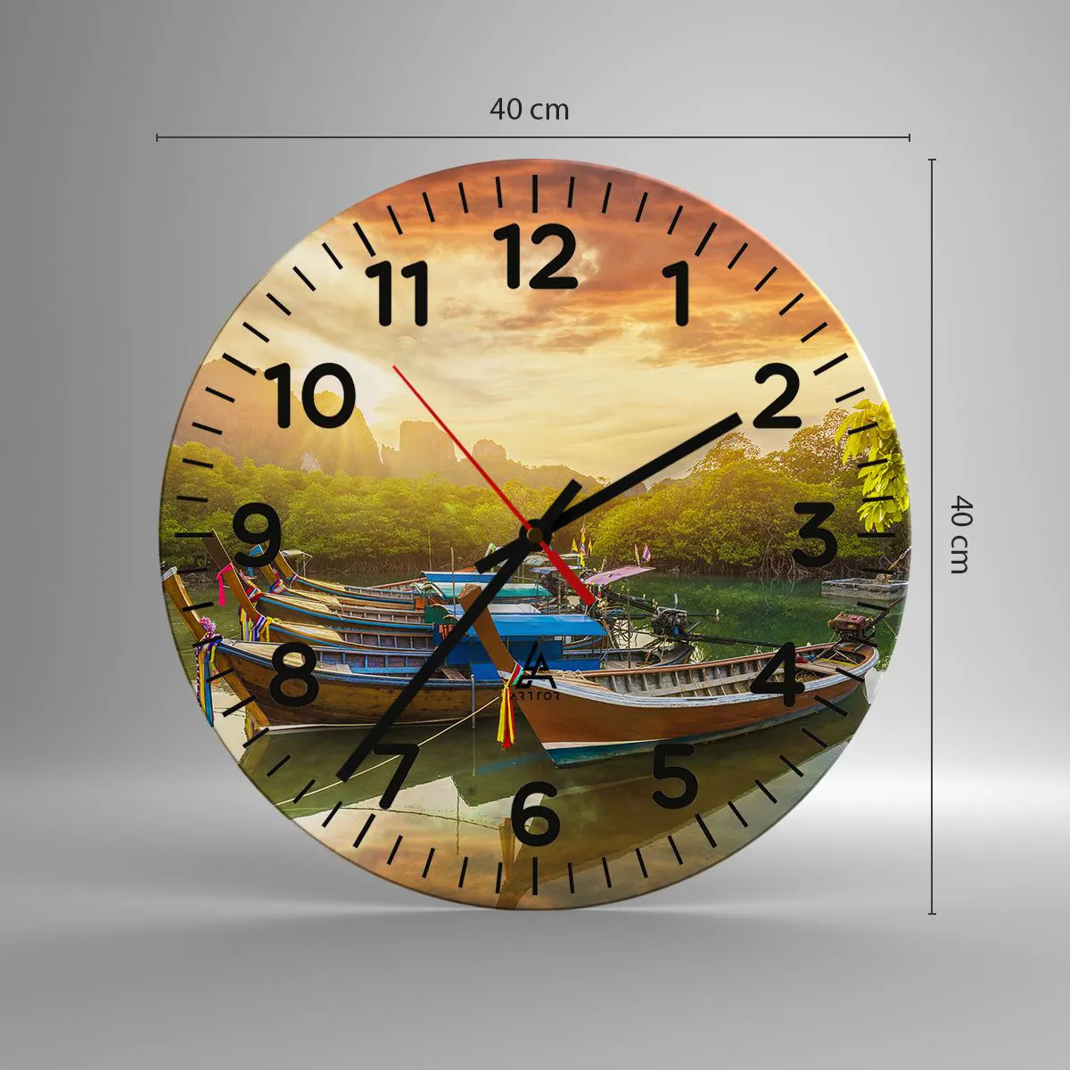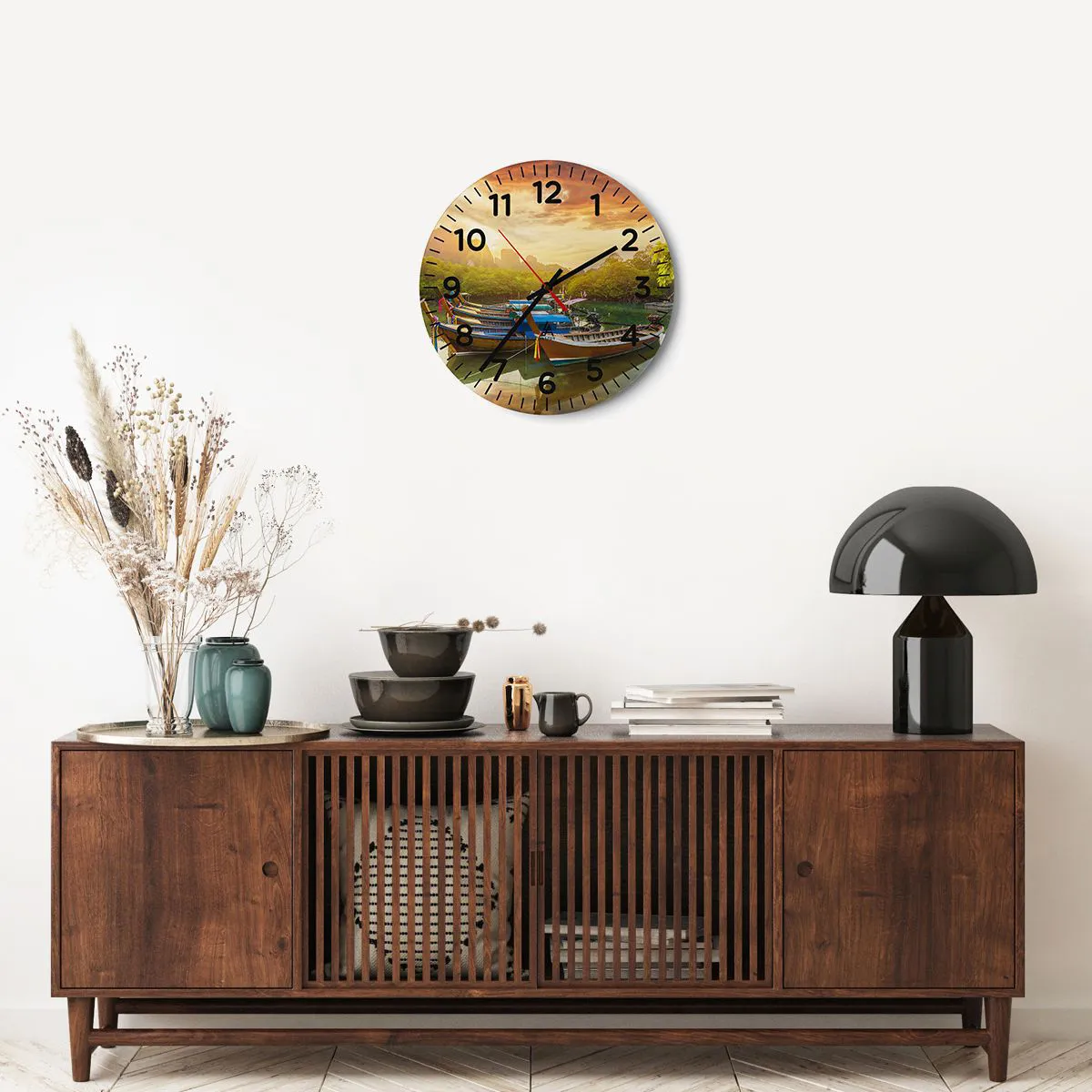 Uret på glas er klar til at hænge på væggen, det er udstyret med en monteret metalophæng for nem montering