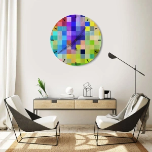Uret er fremstillet af 4 mm tykt sikkerhedsglas. Urets fremstillingsteknologi er i overensstemmelse med sikkerhedsklasse 2B2 i henhold til EN 12600:2004, hvilket garanterer slagfasthed. Uret på glas er klar til at blive hængt op - det har et metalophæng fastgjort på bagsiden af uret og en skumafstandsholder til at regulere urets lige afstand fra væggen. Uret har en lydløs mekanisme, der drives af et 1,5 V - AA-batteri (batteri medfølger ikke).