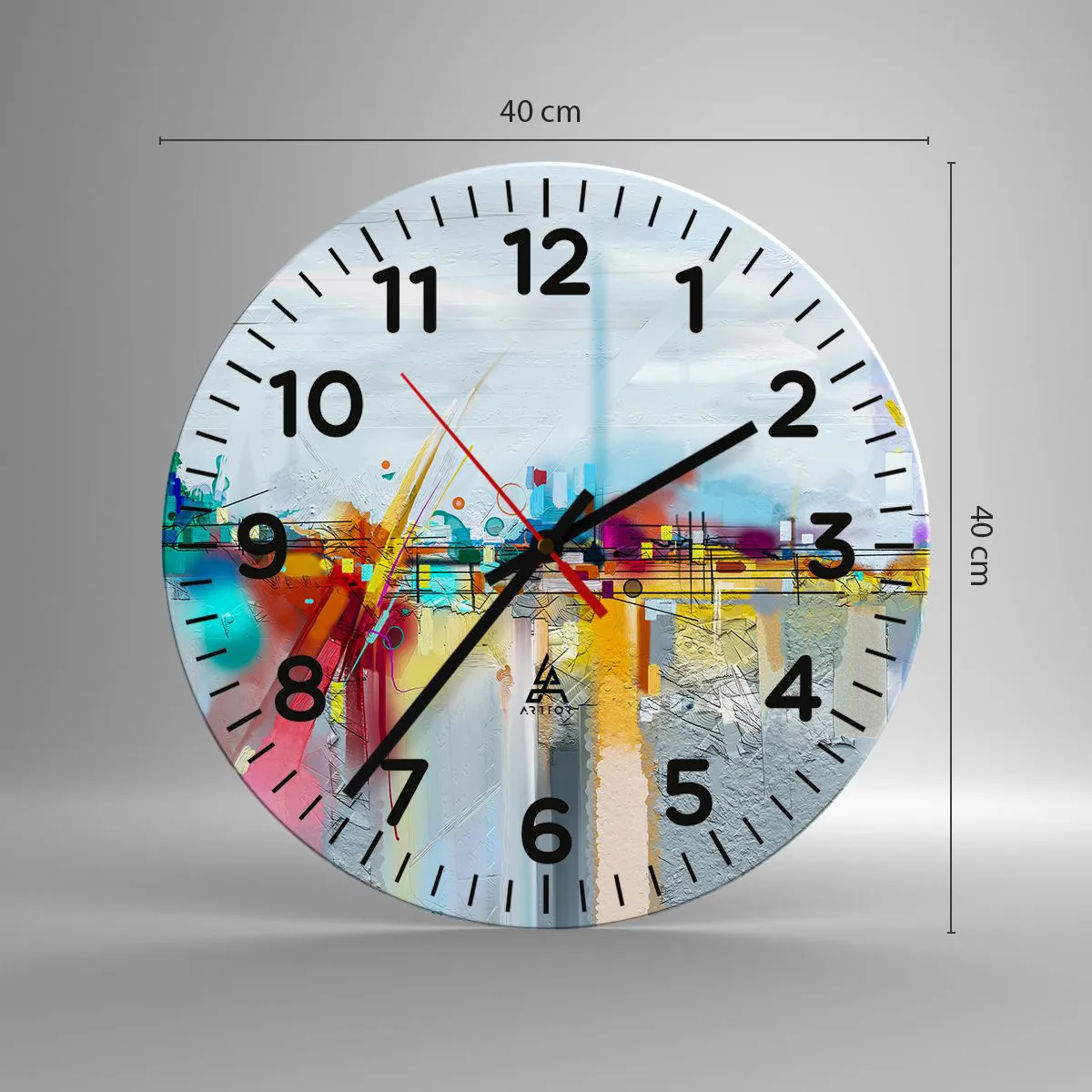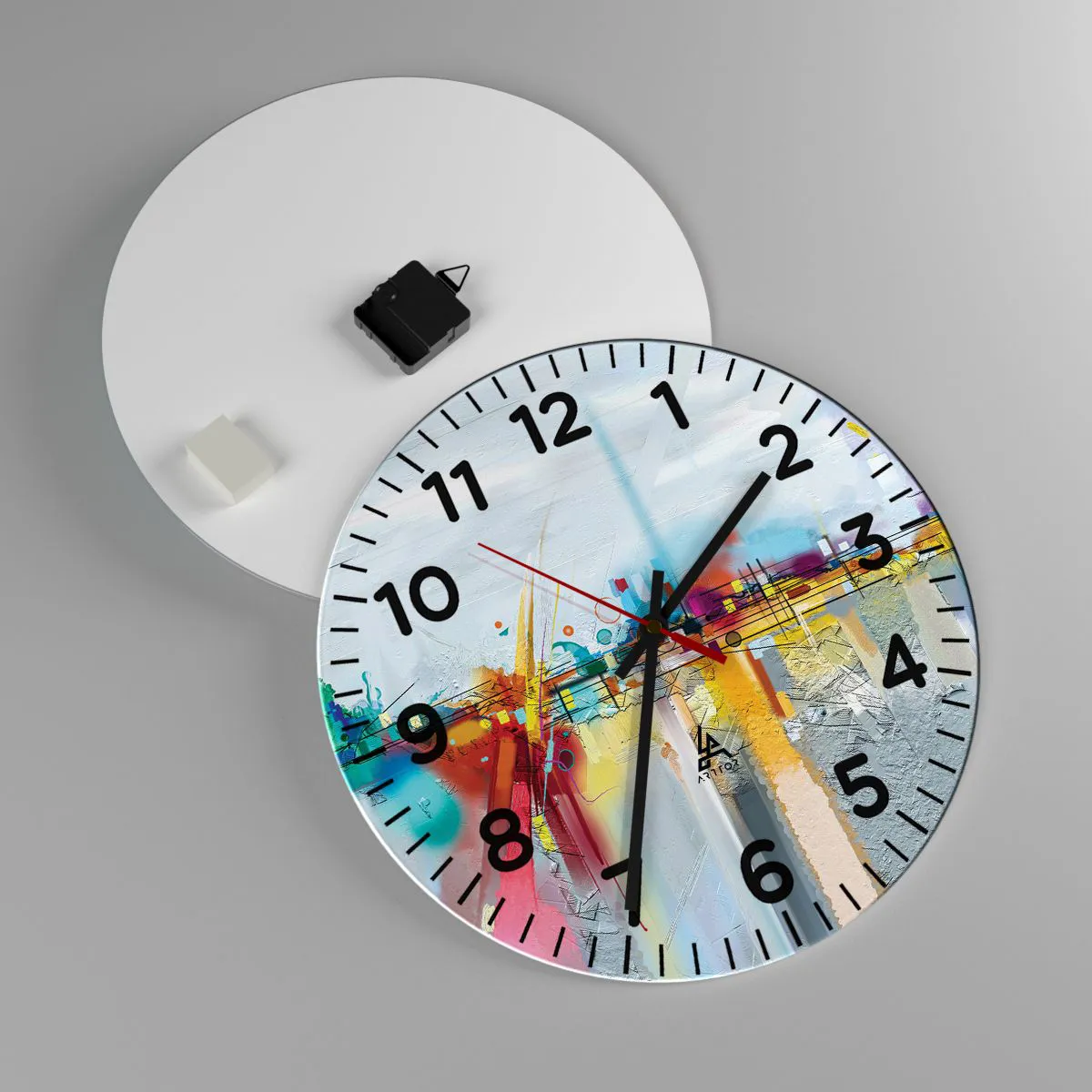Uret er fremstillet af 4 mm tykt sikkerhedsglas. Urets fremstillingsteknologi er i overensstemmelse med sikkerhedsklasse 2B2 i henhold til EN 12600:2004, hvilket garanterer slagfasthed. Uret på glas er klar til at blive hængt op - det har et metalophæng fastgjort på bagsiden af uret og en skumafstandsholder til at regulere urets lige afstand fra væggen. Uret har en lydløs mekanisme, der drives af et 1,5 V - AA-batteri (batteri medfølger ikke).