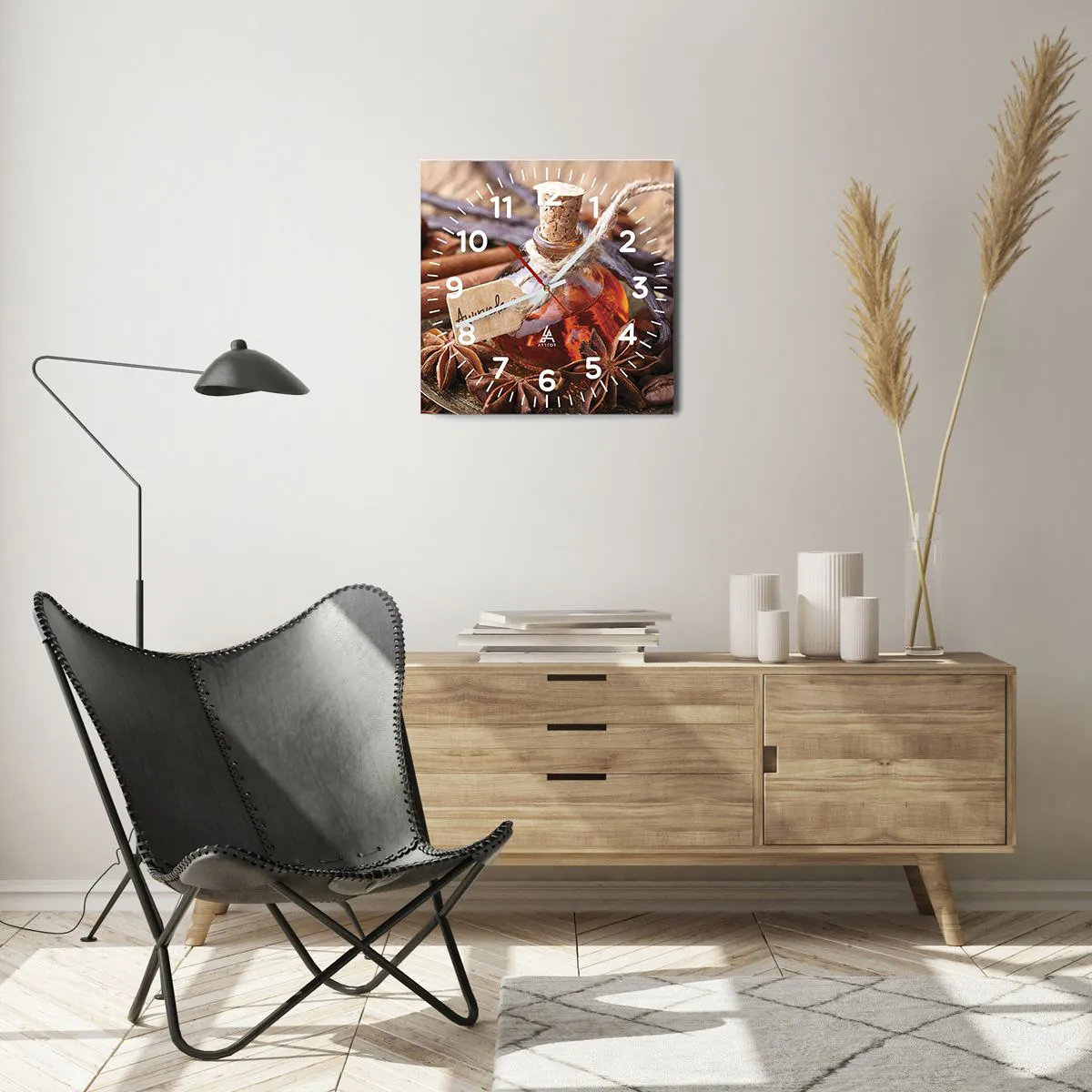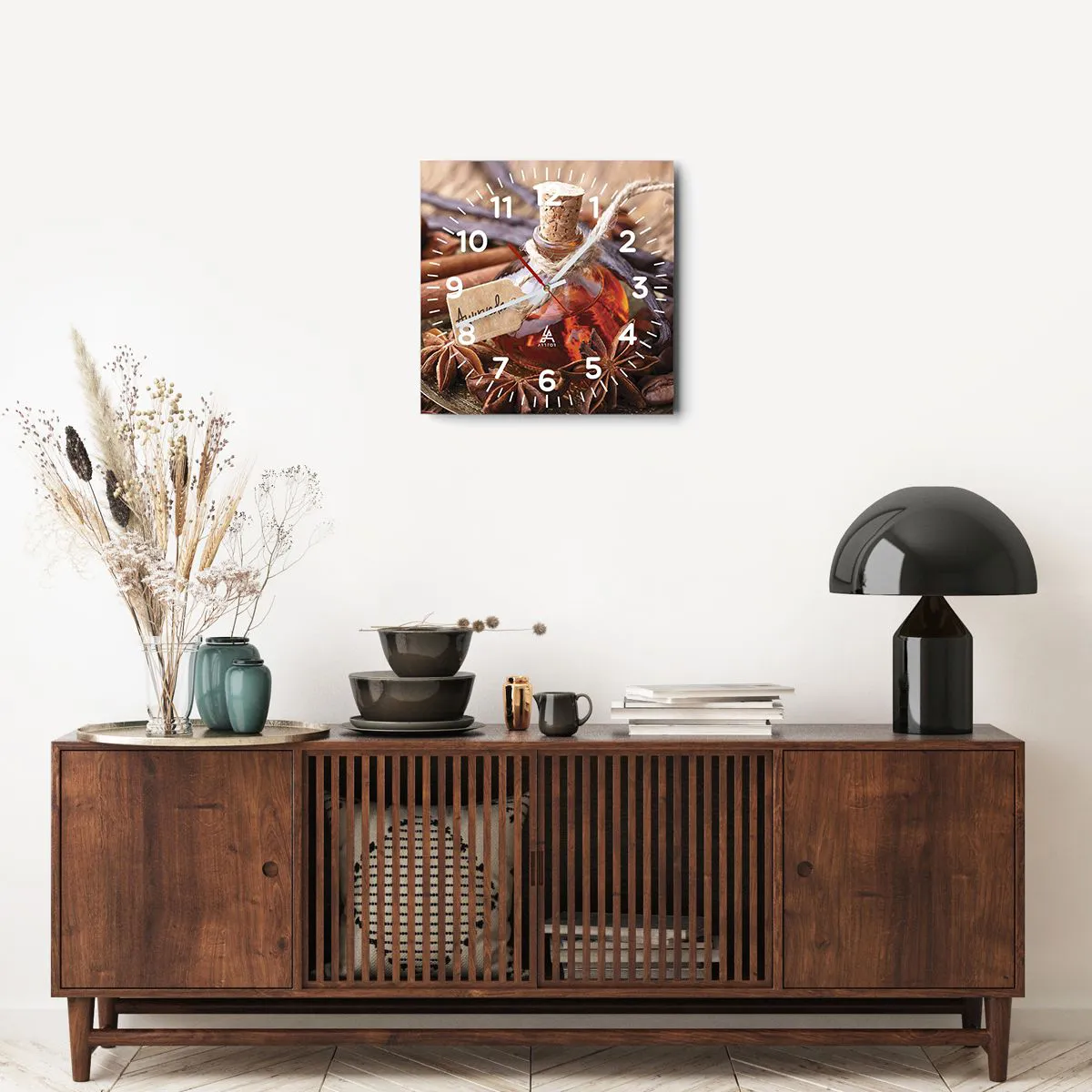 Uret på glas er klar til at hænge på væggen, det er udstyret med en monteret metalophæng for nem montering
