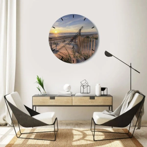 Uret er fremstillet af 4 mm tykt sikkerhedsglas. Urets fremstillingsteknologi er i overensstemmelse med sikkerhedsklasse 2B2 i henhold til EN 12600:2004, hvilket garanterer slagfasthed. Uret på glas er klar til at blive hængt op - det har et metalophæng fastgjort på bagsiden af uret og en skumafstandsholder til at regulere urets lige afstand fra væggen. Uret har en lydløs mekanisme, der drives af et 1,5 V - AA-batteri (batteri medfølger ikke).
