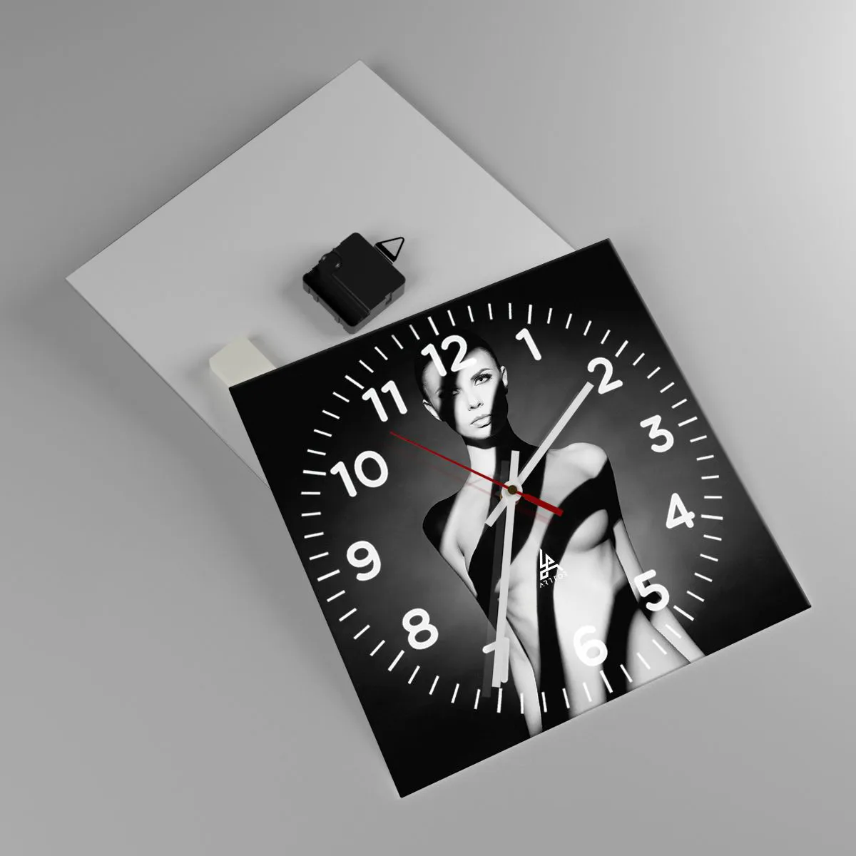 Uret er fremstillet af 4 mm tykt sikkerhedsglas. Urets fremstillingsteknologi er i overensstemmelse med sikkerhedsklasse 2B2 i henhold til EN 12600:2004, hvilket garanterer slagfasthed. Uret på glas er klar til at blive hængt op - det har et metalophæng fastgjort på bagsiden af uret og en skumafstandsholder til at regulere urets lige afstand fra væggen. Uret har en lydløs mekanisme, der drives af et 1,5 V - AA-batteri (batteri medfølger ikke).