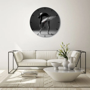 Uret er fremstillet af 4 mm tykt sikkerhedsglas. Urets fremstillingsteknologi er i overensstemmelse med sikkerhedsklasse 2B2 i henhold til EN 12600:2004, hvilket garanterer slagfasthed. Uret på glas er klar til at blive hængt op - det har et metalophæng fastgjort på bagsiden af uret og en skumafstandsholder til at regulere urets lige afstand fra væggen. Uret har en lydløs mekanisme, der drives af et 1,5 V - AA-batteri (batteri medfølger ikke).