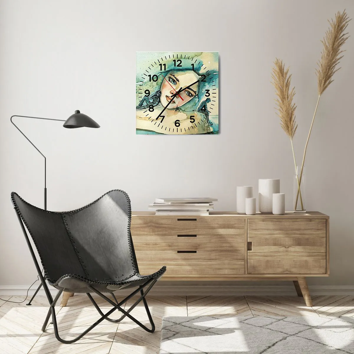 Uret på glas er klar til at hænge på væggen, det er udstyret med en monteret metalophæng for nem montering