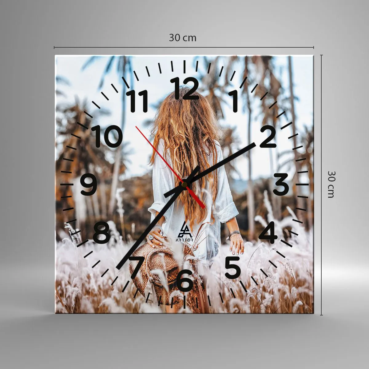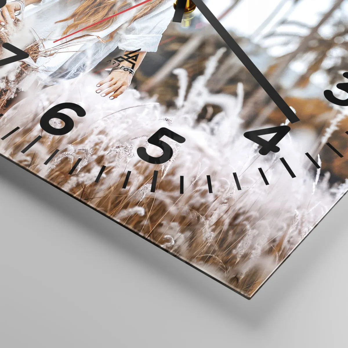 Uret er fremstillet ved hjælp af moderne trykteknologi, som garanterer bevarelse af de naturlige farver og høj farvemætning. Produktionen af ure på glas foregår i flere faser. Trykket af høj kvalitet og de to sikkerhedslag er termisk bundet til glasset. Vi bruger innovativ ovnteknologi til at laminere glas i et vakuummiljø.