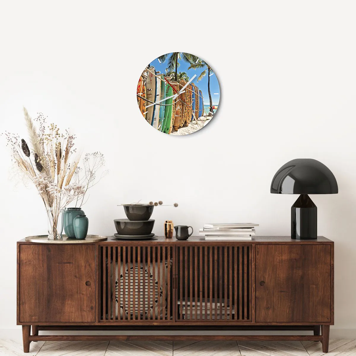 Uret er fremstillet ved hjælp af moderne trykteknologi, som garanterer bevarelse af de naturlige farver og høj farvemætning. Produktionen af ure på glas foregår i flere faser. Trykket af høj kvalitet og de to sikkerhedslag er termisk bundet til glasset. Vi bruger innovativ ovnteknologi til at laminere glas i et vakuummiljø.