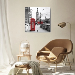 Vægur, Uret - Big Ben og en rød telefonboks med London som baggrund - 30x30cm - Uden tvivl, London - Moderne vægdekoration til stue, køkken og soveværelse ARTTOR