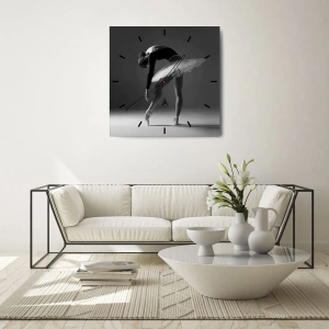 Uret er fremstillet af 4 mm tykt sikkerhedsglas. Urets fremstillingsteknologi er i overensstemmelse med sikkerhedsklasse 2B2 i henhold til EN 12600:2004, hvilket garanterer slagfasthed. Uret på glas er klar til at blive hængt op - det har et metalophæng fastgjort på bagsiden af uret og en skumafstandsholder til at regulere urets lige afstand fra væggen. Uret har en lydløs mekanisme, der drives af et 1,5 V - AA-batteri (batteri medfølger ikke).
