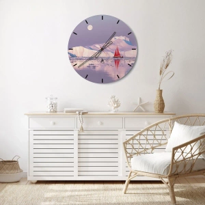 "Sejlets hede, isens kulde" er et ekstraordinært vægur, der transporterer beskueren til et vinterligt, arktisk landskab. Maleriet forestiller et ensomt sejlskib med røde sejl, der sejler blandt majestætiske isbjerge. Hele landskabet komplementeres af månen, der spejles i vandet, hvilket giver kompositionen en magisk og let mystisk atmosfære. Pastelfarver af pink og blå skaber en harmonisk, beroligende atmosfære.