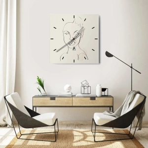 Vægur, Uret - Et minimalistisk portræt af et kvindeansigt - 30x30cm - Omrids af sensualitet - Moderne vægdekoration til stue, køkken og soveværelse ARTTOR