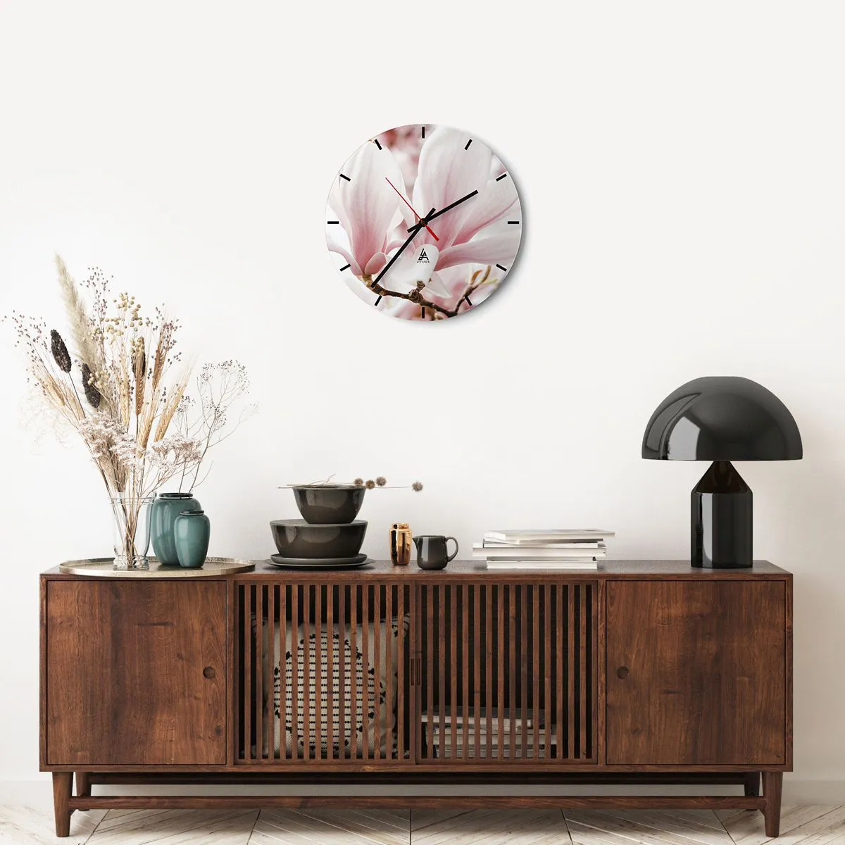 Uret på glas er klar til at hænge på væggen, det er udstyret med en monteret metalophæng for nem montering