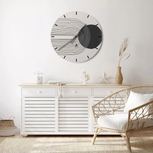 Uret er fremstillet af 4 mm tykt sikkerhedsglas. Urets fremstillingsteknologi er i overensstemmelse med sikkerhedsklasse 2B2 i henhold til EN 12600:2004, hvilket garanterer slagfasthed. Uret på glas er klar til at blive hængt op - det har et metalophæng fastgjort på bagsiden af uret og en skumafstandsholder til at regulere urets lige afstand fra væggen. Uret har en lydløs mekanisme, der drives af et 1,5 V - AA-batteri (batteri medfølger ikke).