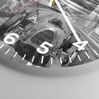 - Uret forestiller en dynamisk scene fra et veteranbilløb på Monte Carlos gader. Den sort-hvide ramme fremhæver den historiske atmosfære og spændingen ved tidligere tiders sportskonkurrencer og tilføjer stil og energi til interiøret.