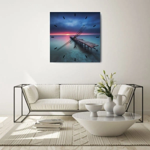 Vægur, Uret - En træbro over et roligt hav i skumringen - 30x30cm - Mellem himmel og jord - Moderne vægdekoration til stue, køkken og soveværelse ARTTOR