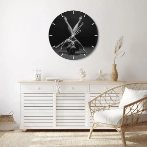 Uret med en diameter på 30x30 cm er lavet af glas af høj kvalitet, hvilket giver helheden en ædel finish og fremhæver farvernes dybde. De fine timemarkører konkurrerer ikke med kompositionen og skaber en sammenhængende og harmonisk helhed. Det vil passe perfekt ind i moderne, kunstneriske interiører i en stue, et soveværelse eller entré.