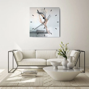 Uret er fremstillet af 4 mm tykt sikkerhedsglas. Urets fremstillingsteknologi er i overensstemmelse med sikkerhedsklasse 2B2 i henhold til EN 12600:2004, hvilket garanterer slagfasthed. Uret på glas er klar til at blive hængt op - det har et metalophæng fastgjort på bagsiden af uret og en skumafstandsholder til at regulere urets lige afstand fra væggen. Uret har en lydløs mekanisme, der drives af et 1,5 V - AA-batteri (batteri medfølger ikke).