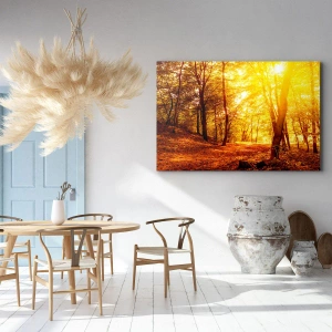 - Et maleri, der forestiller en efterårslysning med en skovsti i gyldent sollys. En stemningsfuld og malerisk komposition, der bringer naturens harmoni og skønhed ind i interiøret.