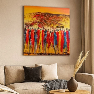 Lærredet er spændt op over rammen. Siderne og kanterne trykkes for at danne en fortsættelse af billedet. Maleriet er klar til at blive hængt op på væggen. Hvert produkt har en bøjle, der er fastgjort til rammen, og et samlesæt (skrue + dyvel).
