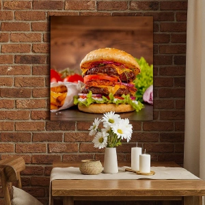 Lærredet er spændt op over rammen. Siderne og kanterne trykkes for at danne en fortsættelse af billedet. Maleriet er klar til at blive hængt op på væggen. Hvert produkt har en bøjle, der er fastgjort til rammen, og et samlesæt (skrue + dyvel).